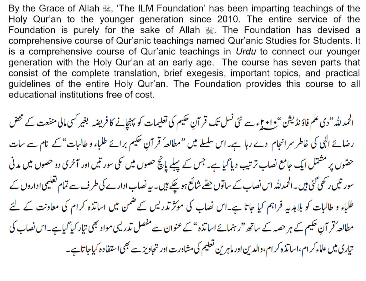 Download Brochure of Mutalae Quran-e-Hakeem